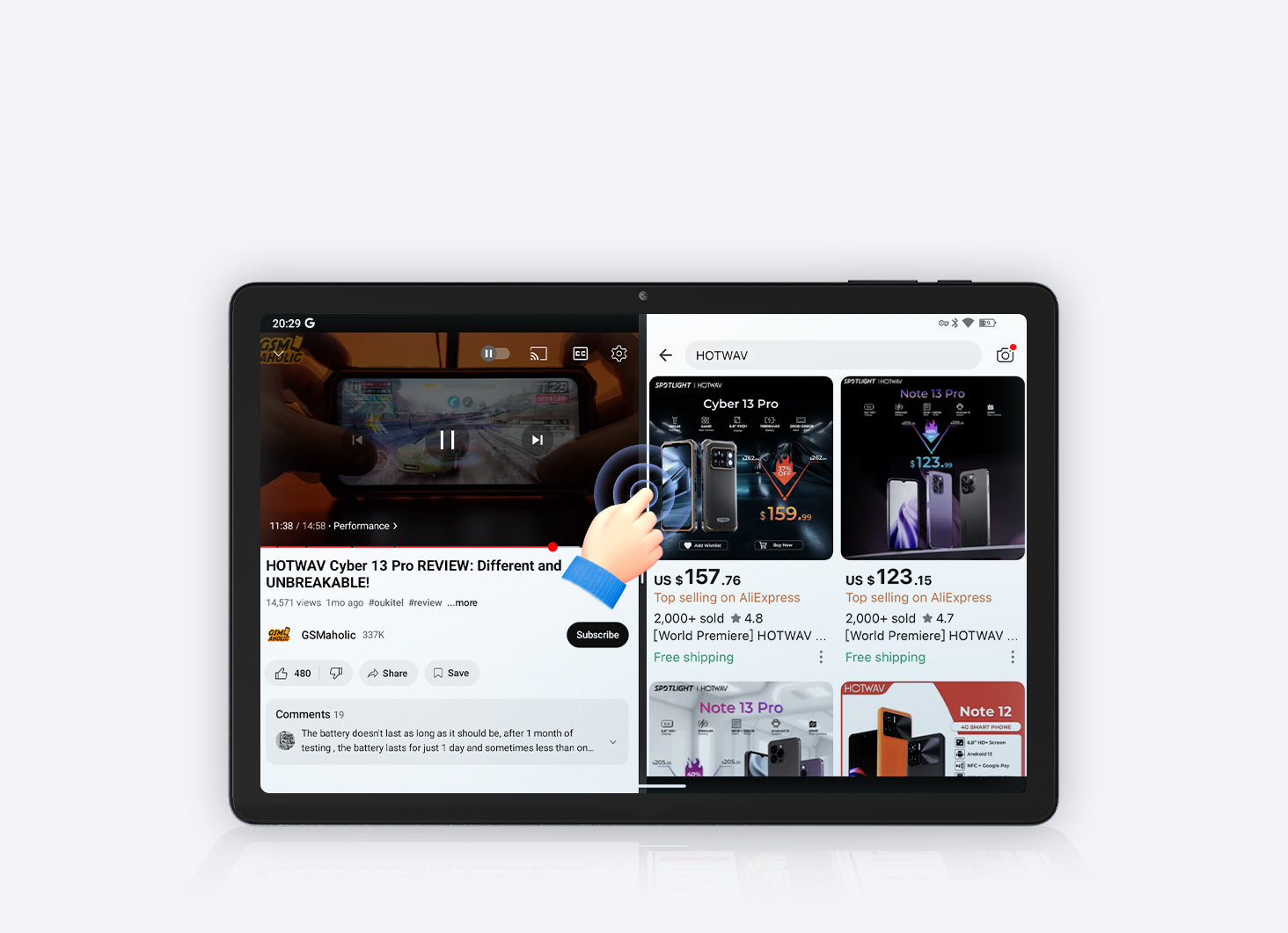 Utilize the split-screen feature on HOTWAV Pad 11 to multitask effortlessly, such as watching videos while browsing websites. Experience enhanced freedom and convenience with this versatile capability.