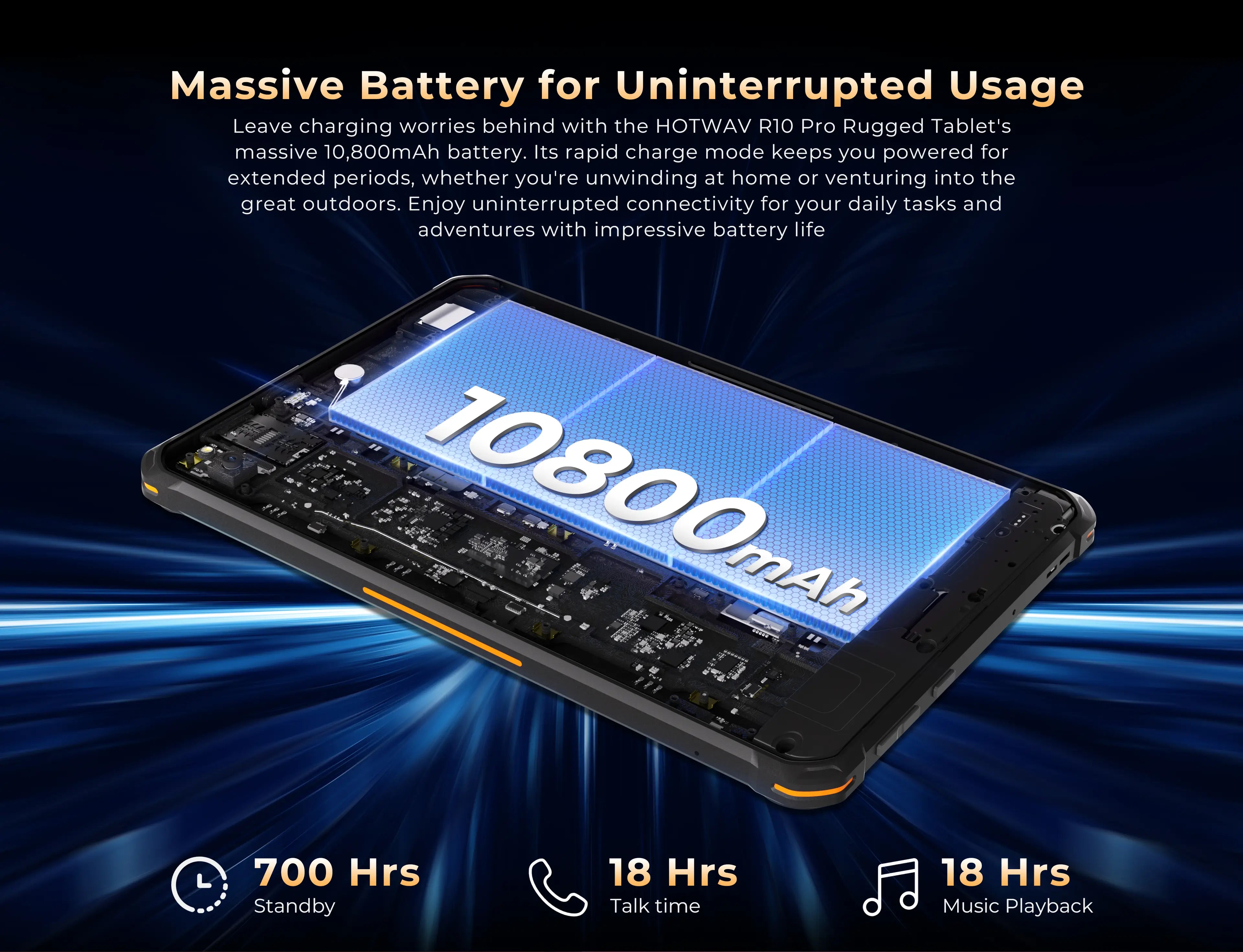 The HOTWAV R10 Pro Rugged Tablet is equipped with a full range of navigation systems, including Beidou, Galileo, Glonass,and GPS. This integrated four-system solution enhances both the accuracy and reliability of positioning services. Whether you're on a cross-country drive or exploring off-the-grid trails, you can count on precise navigation to keep you oriented, regardless of the environment